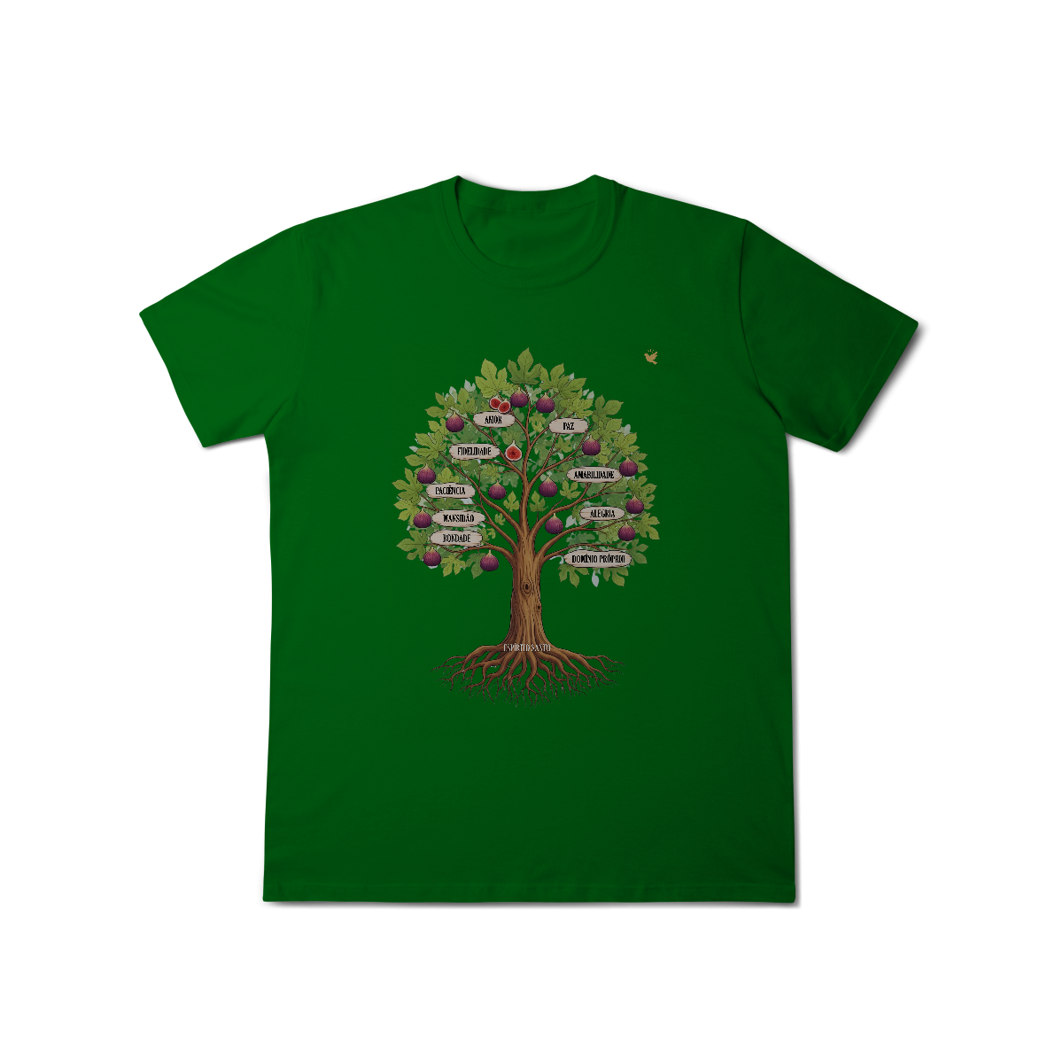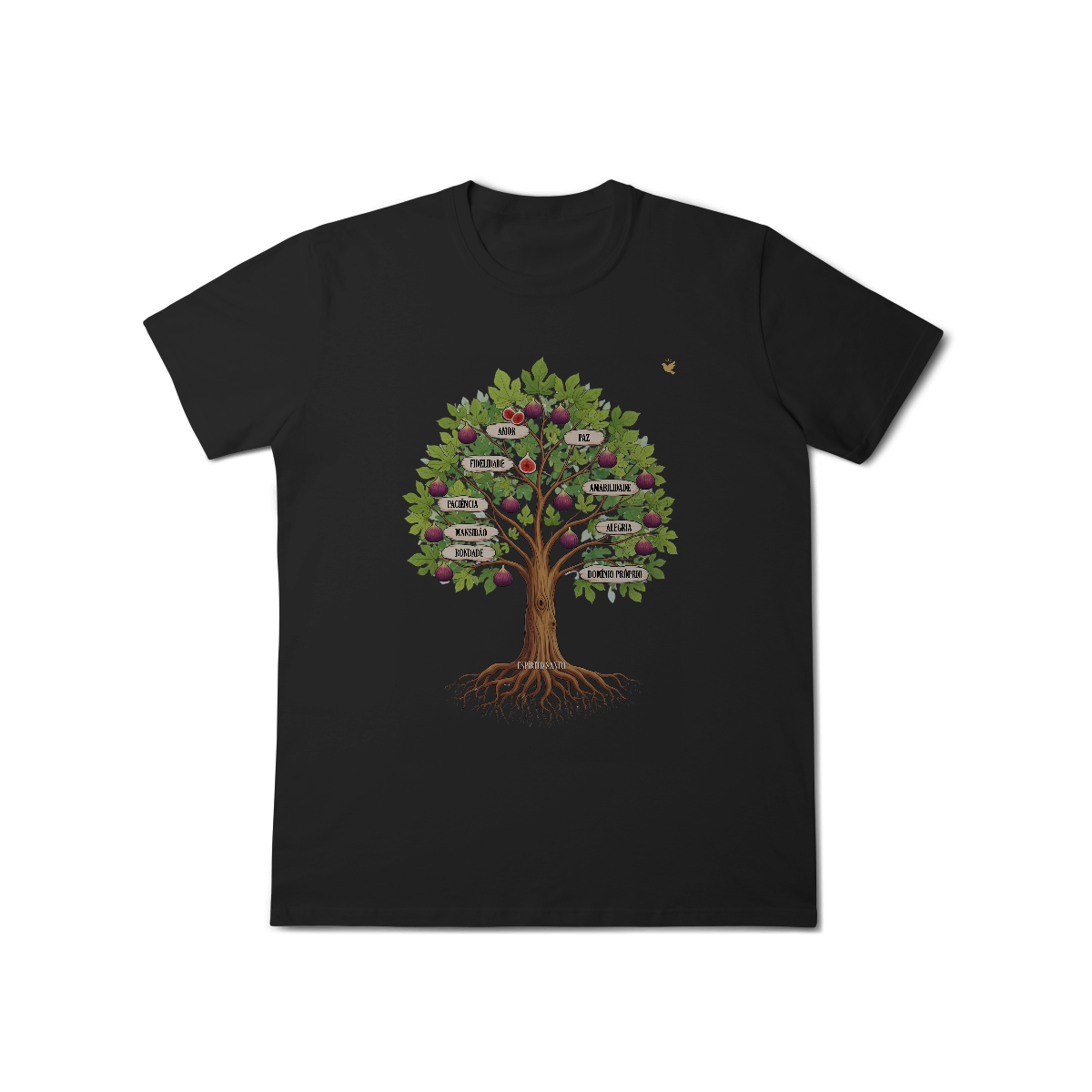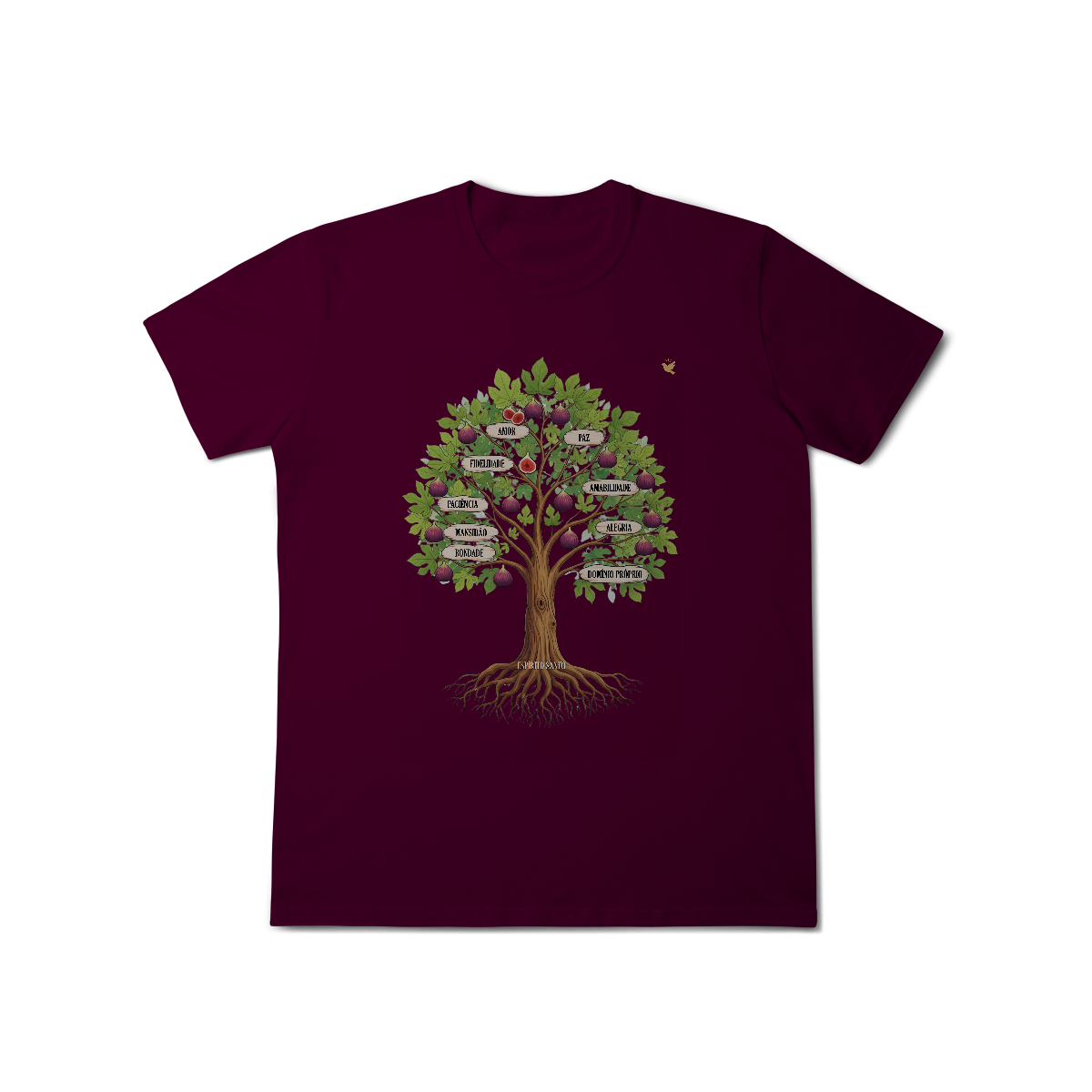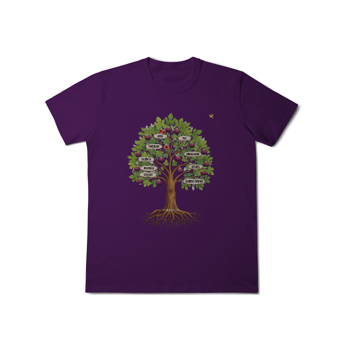 Uma estampa devocional inspirada em Gálatas 5:22-23. Os Frutos Espírito: Amor, Alegria, Paz, Paciência, Bondade, Fidelidade, Mansidão, Amabilidade e Domínio Próprio.