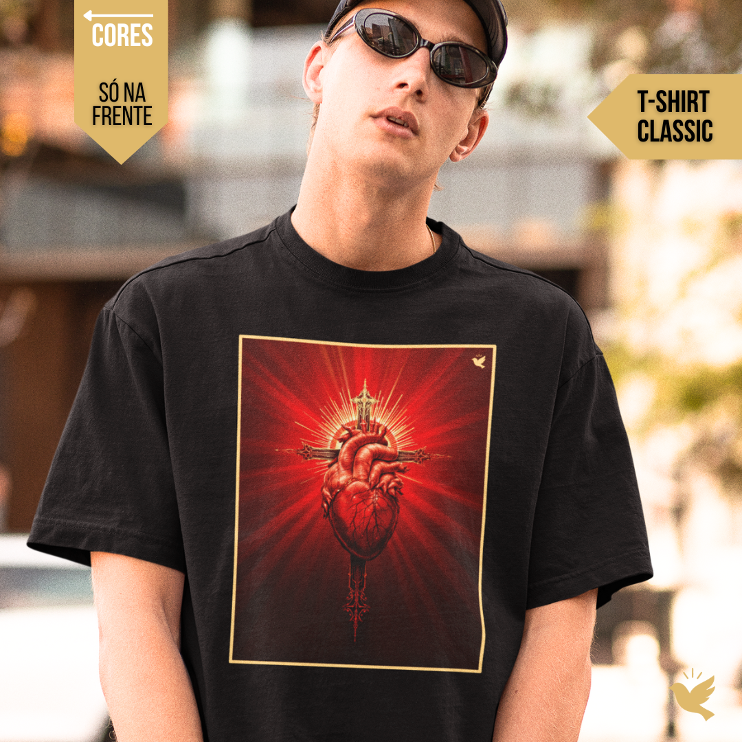O básico elevado à fé. Com tecido leve, toque macio e caimento confortável, a camiseta Classic é aquela peça curinga que vai com tudo — inclusive com sua fé. Feita em algodão penteado, tem gramatura ideal para o dia a dia e acabamento que garante durabilidade. Simples no visual, poderosa no propósito.